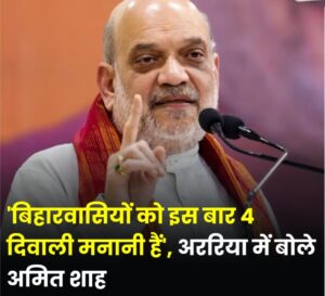 विधानसभा चुनाव के तारीखों के ऐलान के पहले प्रदेश में राजनीतिक सरगर्मी बढ़ गई है. राजनीतिक पार्टियां अपनी पूरी ताक़त इस चुनाव में झोंक दे रही है. शनिवार को केंद्रीय गृहमंत्री अमित शाह बिहार के अररिया दौरे के दौरान चुनावी अभियान को आकार देना शुरू कर दिया है. जनसभा को संबोधित करते हुए उन्होंने बिहार के चुनाव को लेकर इस बार चार दीपावली मनाने का संदेश दिया है. अमित शाह ने जनसभा में ‘जय श्रीराम’ के नारे लगवाए और कहा कि ‘बीजेपी चुन-चुन कर एक-एक घुसपैठिया को देश से बाहर करेगी.’